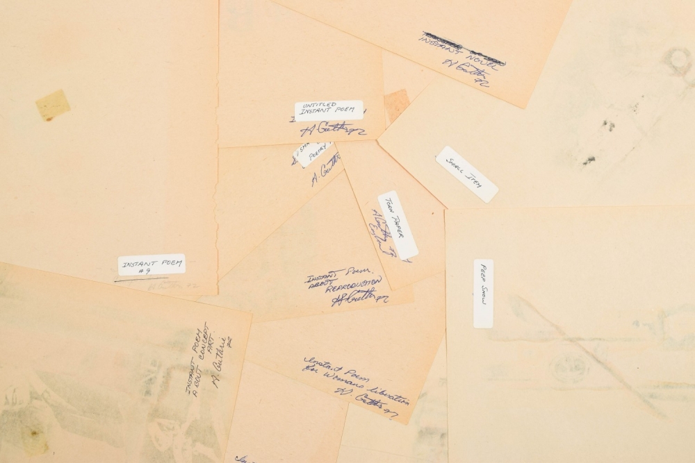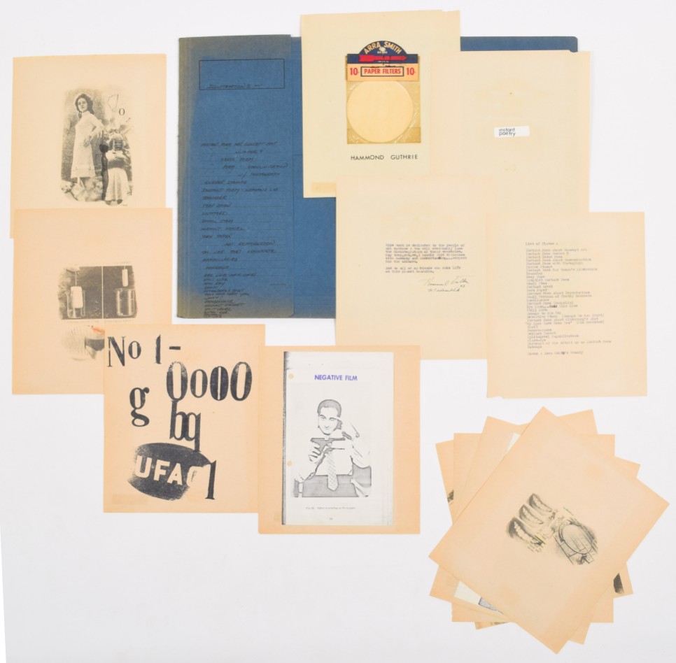 Guthrie (1948-2019) was part of the 60s-70s alternative literary scene in California and London. As a writer he contributed to the International Times, Schmuck, and publications edited by Michael Gibbs. Settling in Amsterdam in the early 70s his printmaking projects were supported by Sandberg, the former director of the Stedelijk Museum. Guthrie's artistic career was cut short by the distraction of the bustling drug culture in Amsterdam and eventually he moved back to the USA. The Santa Barbara Museum of Art holds a work in their collection which is similar to the manuscript, a box with loose leaved collages called 'The Original is a Reproduction'.