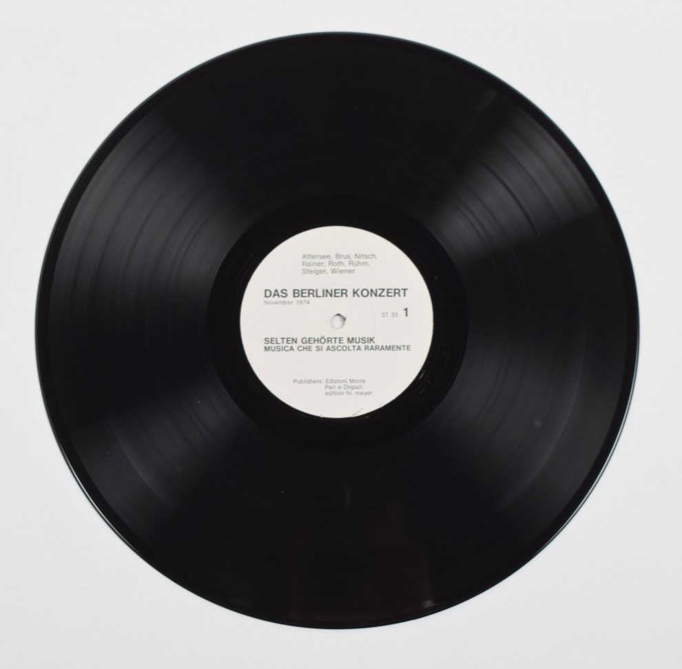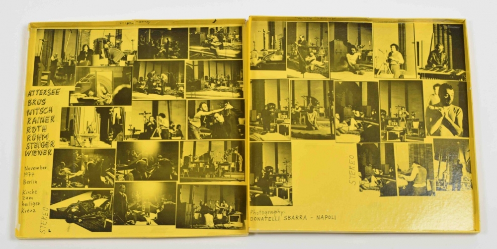 Attersee, Brus, Nitsch, Rainer, Roth, Rühm, Steiger, Wiener. November 1974 Berlin. Kirche zum heiligen Kreuz. 3 lp box. Photogaphy: Donatelli Sbarra, Napoli.
