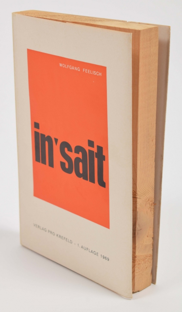 + Wolfgang Feelisch, In'sait. Krefeld, Verlag Pro, 1969. 20 x 13 cm. Wooden block in printed bookcover. First edition, unsigned, unnumbered. (total 2)