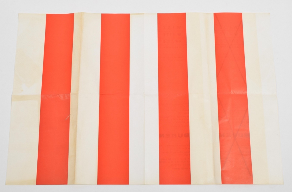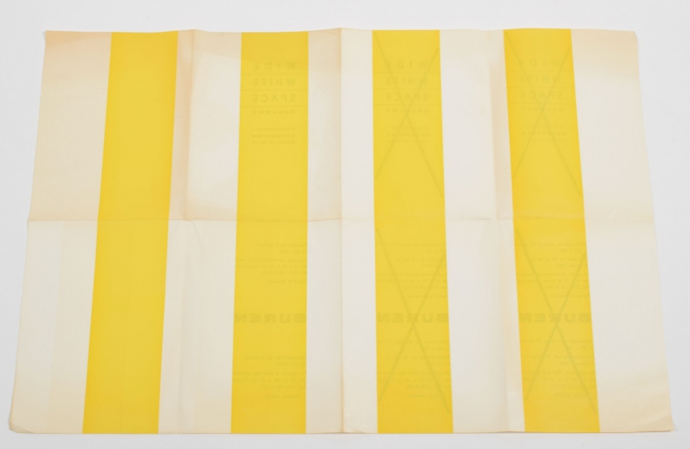 Antwerp based leading avant-garde gallery run by Anny De Decker and Bernd Lohaus (1966-1976). Included are two large posters from a series designed by Daniel Buren for five exhibitions. The red/white striped poster is the second in the series and shows information about the previous 1969 exhibition crossed out and replaced with details for the 1971 show.