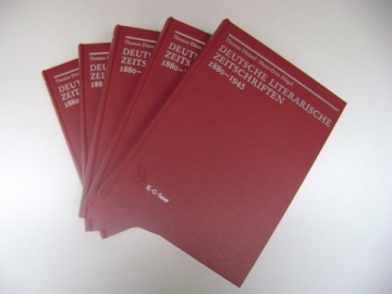 Deutsche literarische Zeitschriften 1880-1945. Ein Repertorium. Uitg. Deutschen Literaturarchiv Marbach am Neckar. 4 Banden + register, K. G. Saur, München. (totaal 5)