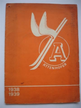 44 pag. geniet, met vele illustraties van ski`s, skistokken e.d., 3-talig.