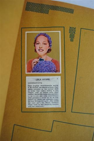 See the Dutch description: 1933. Zeldzaam touwgebonden album waar voor invoering van de tabakswet voor zover bekend slechts 1 plaatje in de roulatie kwam. Dit exemplaar is dus compleet met dat plaatje.