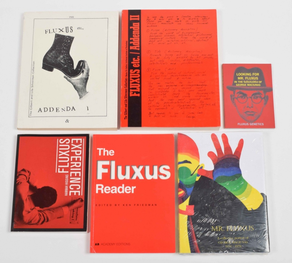 + Ken Friedman, The Fluxus Reader. London, Academy Editions, 1998. + Hannah Higgins, The Fluxus Experience. University of California Press, 2002. + Mr. Fluxus, a collective portrait of George Maciunas, 1998. New in plastic. + Looking for Mr. Fluxus, 2001. (total 6)