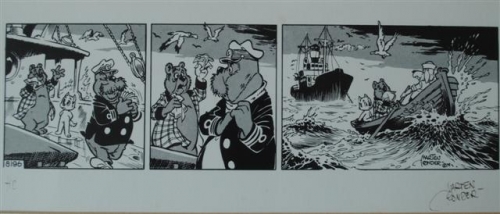 See the Dutch description: 1975, waarin heer Bommel en Tom Poes het schip van heer Wal Rus grif betaald verlaten. Exemplaar HC, met signatuur Marten Toonder.