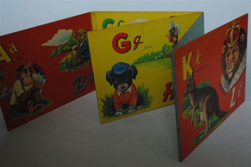 This item contains no English description. See the Dutch description: ABC leporello. Hard kartonnen leporello. Enkele penstrepen en een kindernaam in pen op voorplat. Elk blad ca. 18 x 12 cm.