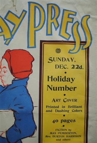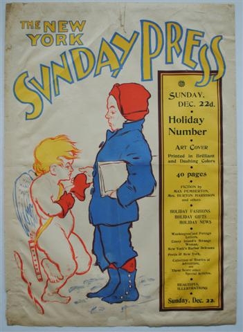 See the Dutch description: The New York Sunday Press, dec. 22nd. Anonymous, Wood & Parker, Lith. New York, ca. 1898. Een krantenjongen geeft zijn wanten aan een engeltje dat het koud heeft.