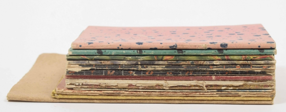 (1846-1869 and 1848-1925). Seven booklets in small 8vo size, 32-44 p., mostly containing handwritten songs by the pious Frisian sisters Woltje (5x) and Jeltje (2x) Doekles Gerritzen, dated 1856-1874, all in various colourful original wrappers.