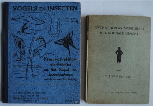 See the Dutch description: Westerstraat, Amsterdam. Vogels en insecten. Verzamel-Album van Plaatjes uit het Vogel- en Insectenleven. Met leerzame beschrijving. [Geen pag.]. H. Linn. met kartonnen platten. Compleet met alle 80 ingeplakte plaatjes. -EN: 1 andere (totaal 2)