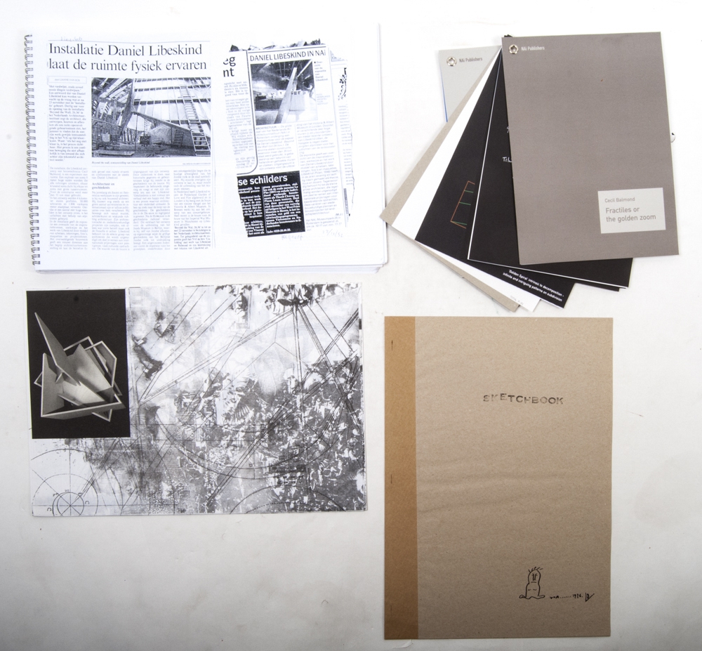& Cecil Balmond. Unfolding. Boilerhouse Extension V & A Museum; Working Process, associations tiling, pure thinking, flip over/Nai exhibition: construction, models, drawings. Rotterdam, NAI Publishers, 1997. Folio. Loose contents in box, with orig. paper cover. Ills. in colour and b&w + book about the exposition.