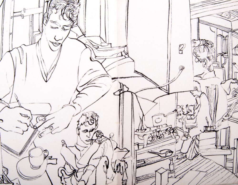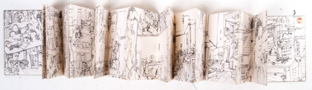 Original ink drawing in leporello form. 1962. 16x11 cm. On Japanese paper. Signed.