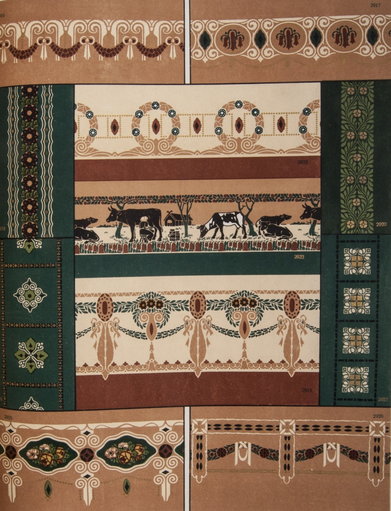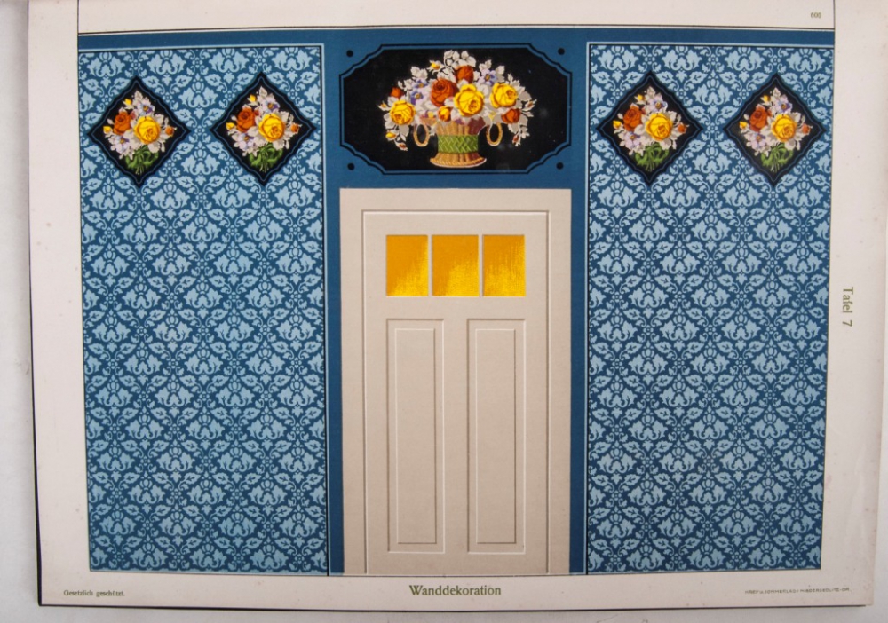 Ed. by Karl Luth. Circa 1930. 66 prints with 106 illustrations of wall and ceiling decorations. Folio. Renewed binding. + 61 prints with wall and ceiling decorations in cloth, folio.
