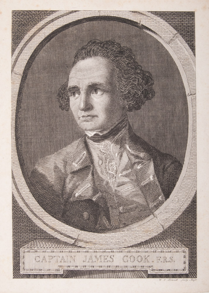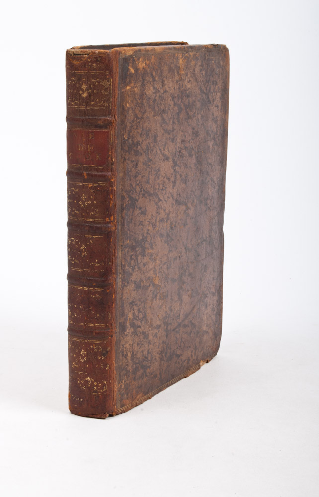 (by J.H. Castera). Paris, Rue des Poitevins, Hôtel de Thou, 1789, XXXII,546(2) p., with two EXTRA engr. portraits of James Cook (1x bound, 1x inserted loose), contemporary marbled gilt calfskin, 4to.