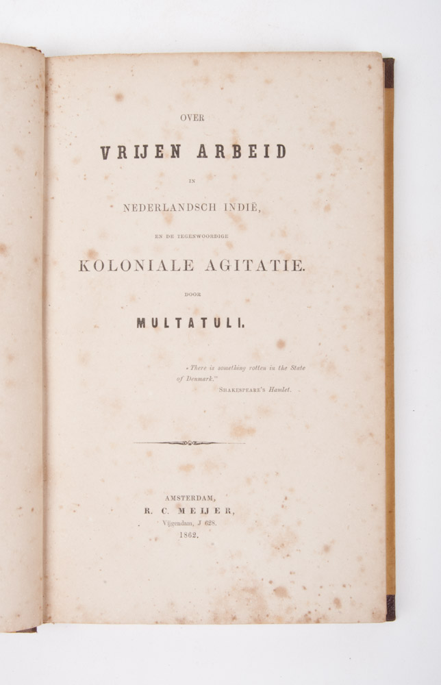 en de tegenwoordige Koloniale Agitatie by Multatuli (=Eduard Douwes Dekker] , Amsterdam, R.C. Meijer, 1862 [in a single vol. with] Nog-eens Vrye-Arbeid in Nederlandsch indië by Multatuli, Delft, J. Waltman Jr., 1870.