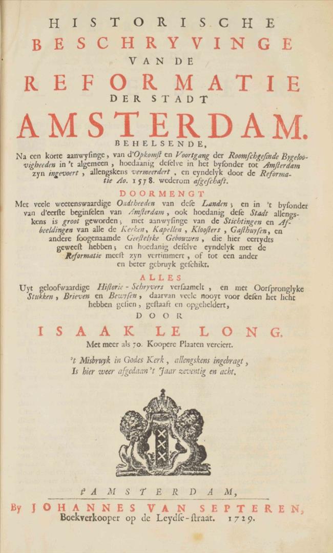 [Le Long] Historische beschryvinge van de reformatie der stadt Amsterdam (...)