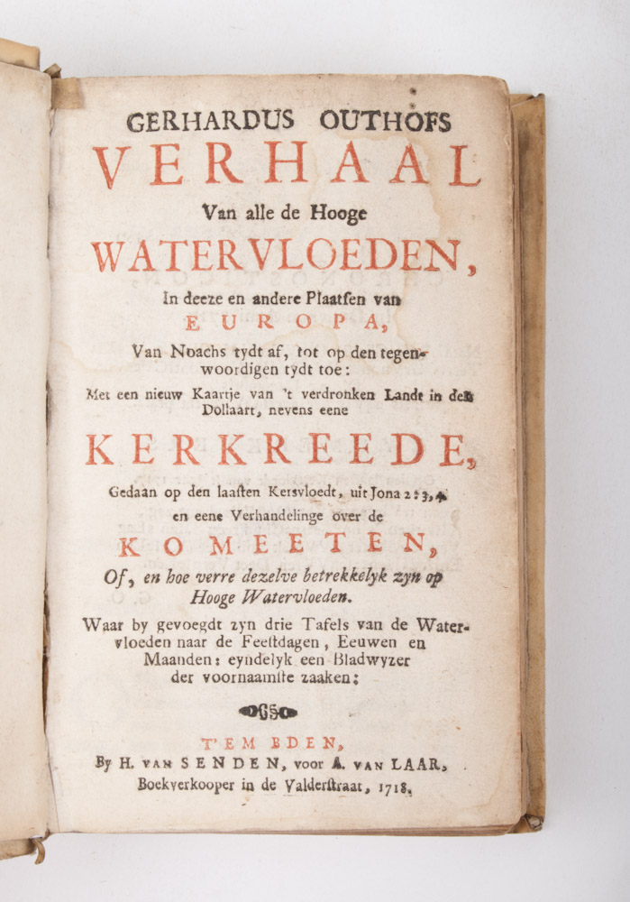 van Europa, van Noachs tydt af, tot op den tegenwoordigen tydt toe (..) nevens een kerkreede (..) en eene verhandeling over de komeeten, of, en hoe verre dezelfde betrekkelyk zyn op hooge watervloeden. Gerardus Outhof, Embden, H. van Senden for A. van Laar, 1718.