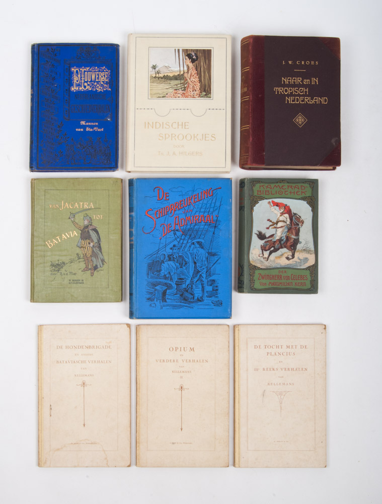 With: Naar de(n) Oost! Opmerkingen van een Indischman door Creusesol [= I.P.C. Graafland]. Utrecht, Van der Heide & Leijdenroth, 1908, (6),158,(2) p., original illustrated clothbacked cardboard sides (good copy).