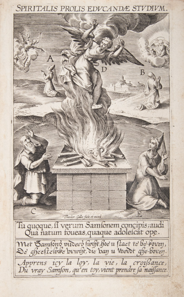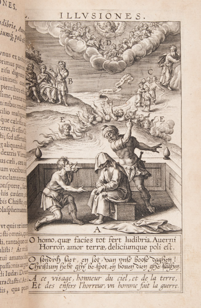 First edition of this wonderfully illustrated work about 12 mirrors mankind uses to try and see God, written by Jan David (1543-1613), title page and illustrations by Theodoor Galle (1571-1633).