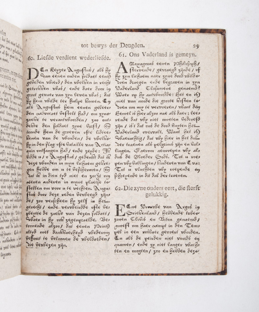 By-een vergaderd uyt verscheyde zoo oude als nieuwe weireldlyke en geestelyke schryvers. Gend, Bernard Poelman. 1766.