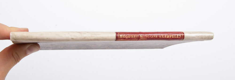 Sm. 4to., half-vellum, newly bound, red and gilt-stamped title on spine, title page with vignette and small stamp in red, pp. 33-34 repaired with Japanese paper. 100 life lessons and their explanation. Rare.