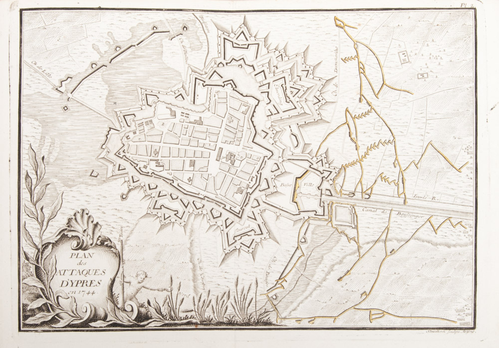 The siege of Flemish cities during the War of the Austrian Succession, with the text in the form of a Journal (varying from 2 to 10 pages) about the siege of each city, followed by the city plan, in chronological order: first Menin in May 1744 and last Maastricht in April 1748. Some of the other cities are of course Brussels and Antwerp and Bergen op Zoom, Oudenaarde and Ostend.