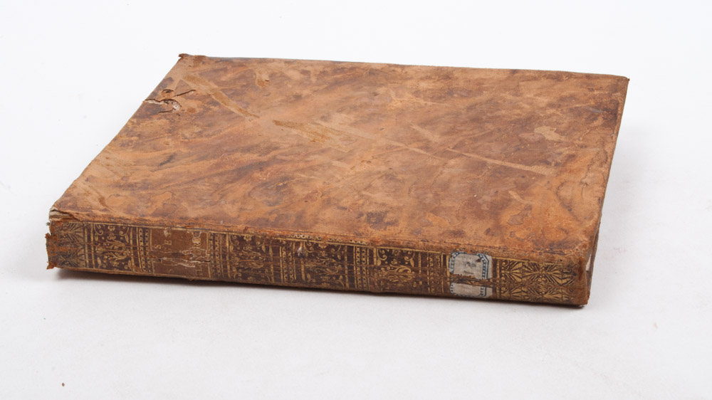 Several plans protruding with outer margins from bookblock and there raffled and discoloured by dust (1 plan with small tear); sl. browned; old note on endpaper; leather withered and scratched and with wormholes in top cover. Good copy.