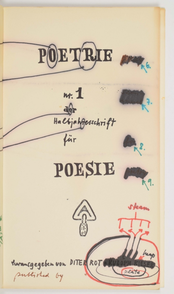 This is a reworked copy, with original written and painted interventions all over the book in coloured felt-tip pen. Plus an Extrablatt. Numbered No.36. Signed Diter Rot 67. Some soiling to the cover else a stunning item.
