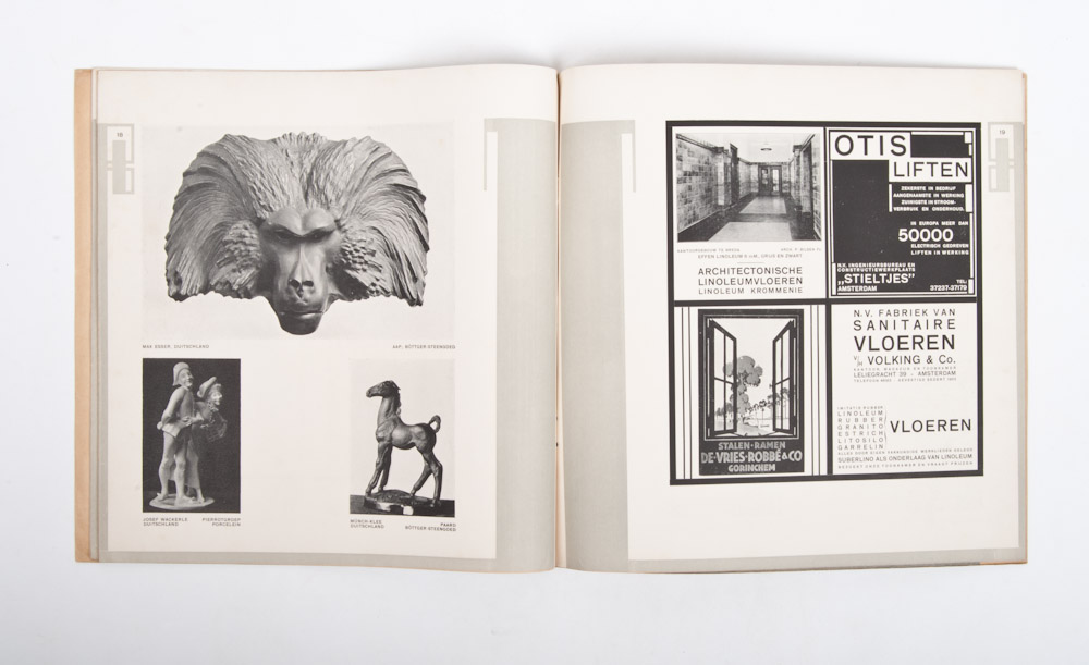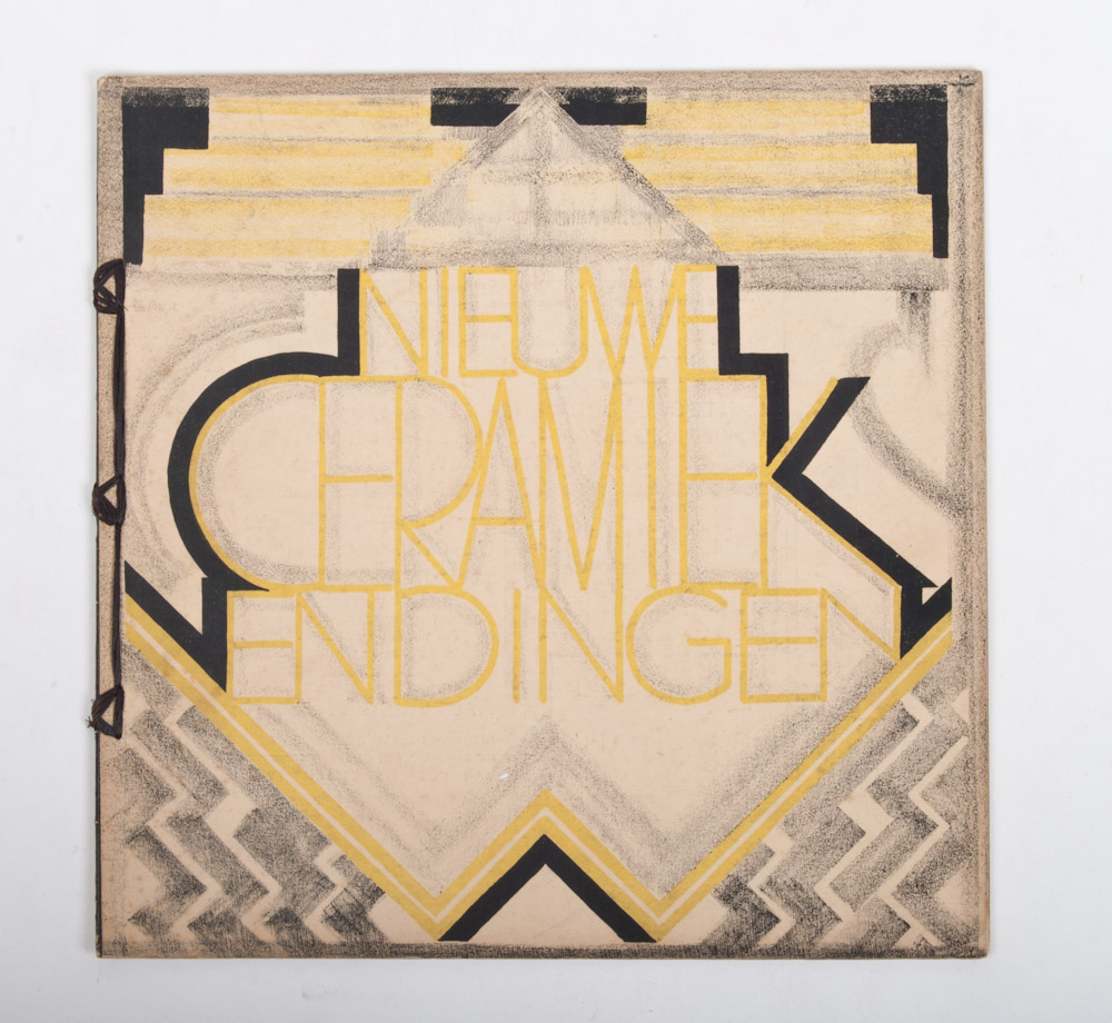 Dedicated to Nieuwe Ceramiek. C.A. Mees, Santpoort, 1927. 21 pp. String-bound. Cover illustration: Tine Baanders. Typography: N. Th. Wijdeveld. Compiled by H.C. Verkruysen.