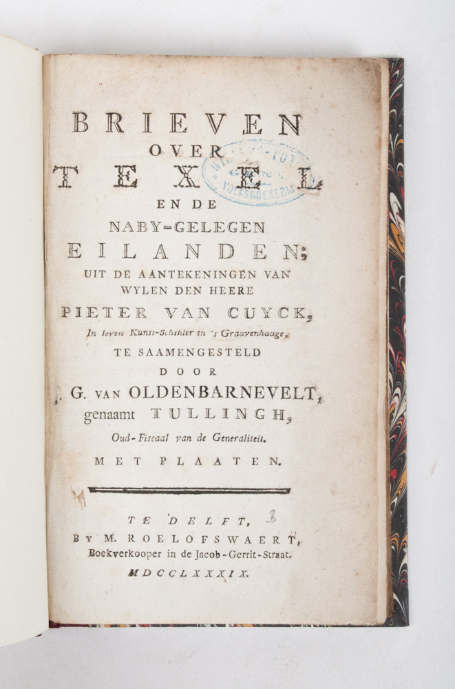 Uit de Aantekeningen van wylen den Heere Pieter van Cuyck, In leven Kunst-Schilder in's Graavenhaage, te saamgesteld door J. G. van Oldenbarnevelt, genaamt Tullingh, Oud-Fiscaal van de Generaliteit. Delft, M. Roelofswaert, 1789. [together in one binding with] Beschryving van eenige Oudheden, gevonden in een Tumulus, of Begraafplaats, op het Eiland Texel, in November 1777, Amsterdam, Yntema en Tieboel, 1780.