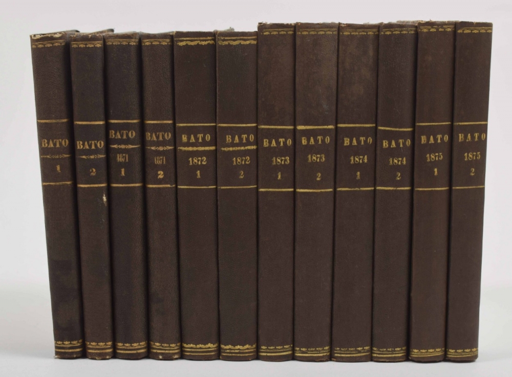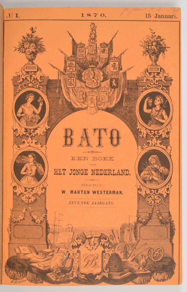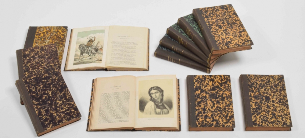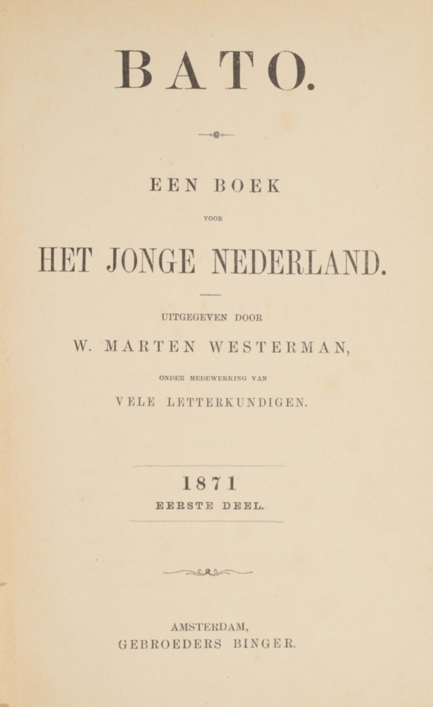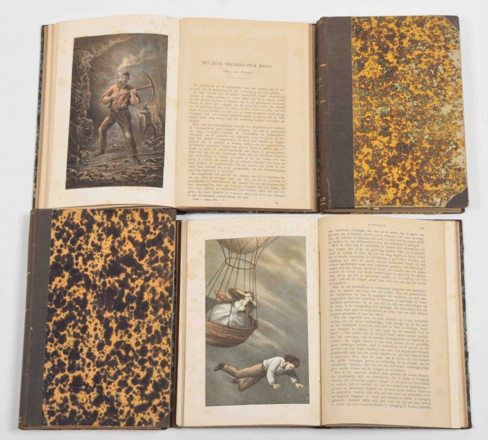 Uitgegeven door W. Marten Westerman/ E. Laurillard, onder medewerking van vele letterkundigen. Amsterdam, Gebroeders Binger, 1870-1875, 2 vols. per year. With many colour lithographic plates. Halfleather, gilt title on spine, uniformly bound.