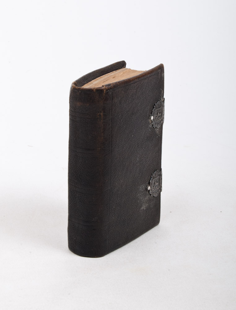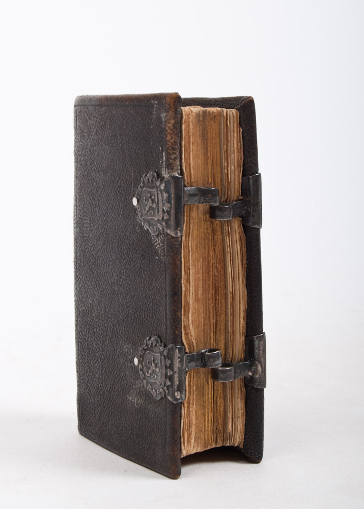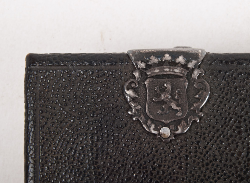 Met fraaije Printverbeeldingen vercierd, en verrykt met alles wat tot een volmaakte Almanach behoord; mitsgaders veele nutte byzonderheden, nooit voor dezen gedrukt. Amsterdam, Adam Meyer, z.j. (1764), 175,(1) p., with engr. frontispiece, 12 engr. plates in almanac part (p. 1-16, printed in red and black) and 1 folding plate with 12 portraits, contemporary black imitation sharkskin with 4 silver clasps for stylus (missing), all page edges gilt, 16mo.