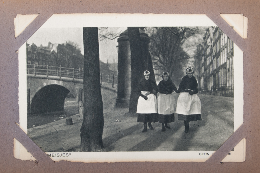 31 cards from the Stemmingsbeelden van Amsterdam Series and Bernard F. Eilers, 1912. Stamp on back "Archief C. Spook Tekenaar" - and 16 others, including several cards from Volksleven Amsterdam and a photo card.