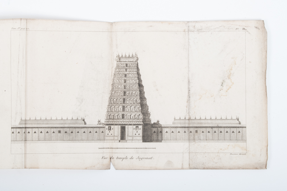The plate volume of a rare work on India, the plates depict temples, a map and a profile of Fort Williams, a map of Pondicherry and trees and plants, among other things.