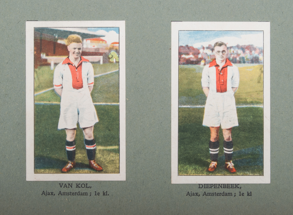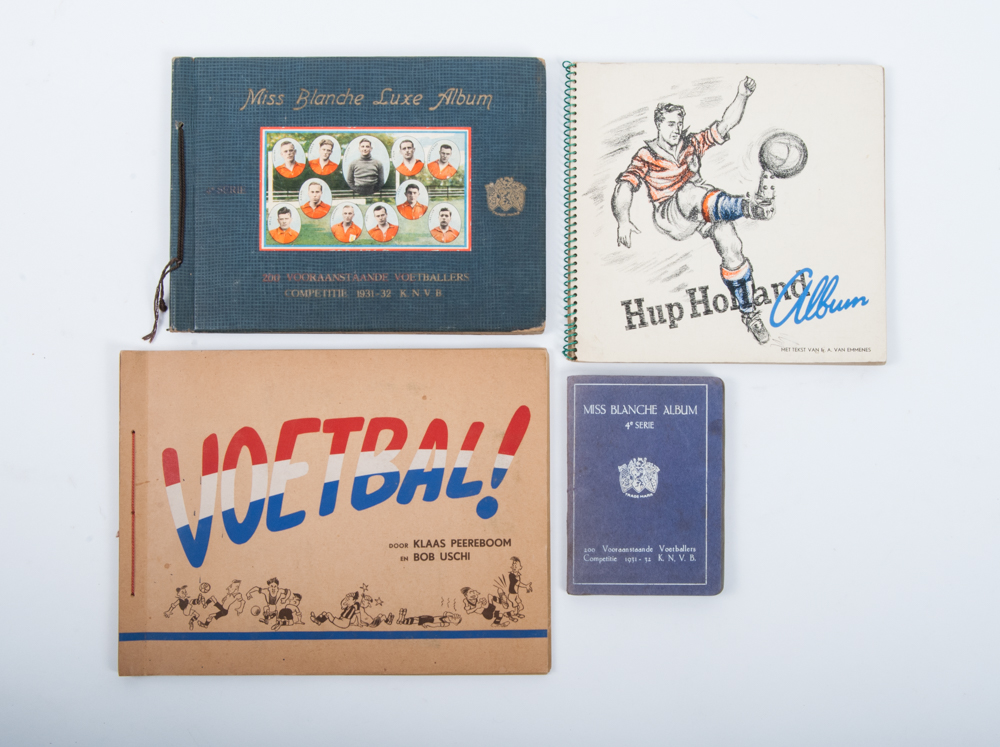 200 Vooraanstaande Voetballers. Competitie 1931-32. K.N.V.B. Pocket book. Rarer version of the oblong album that was published that same year + said oblong album + Hudson Sigarenfabrieken Roosendaal - Hup Holland Hup, 1959. Ring-bound album with pictures in the shape of cigar bands. Incomplete album (ca. 75 percent complete) + N.V. het Raedthuys Amsterdam, 1949. Voetbal!. Klaas Peereboom and Bob Uschi. Complete with 100 pictures.