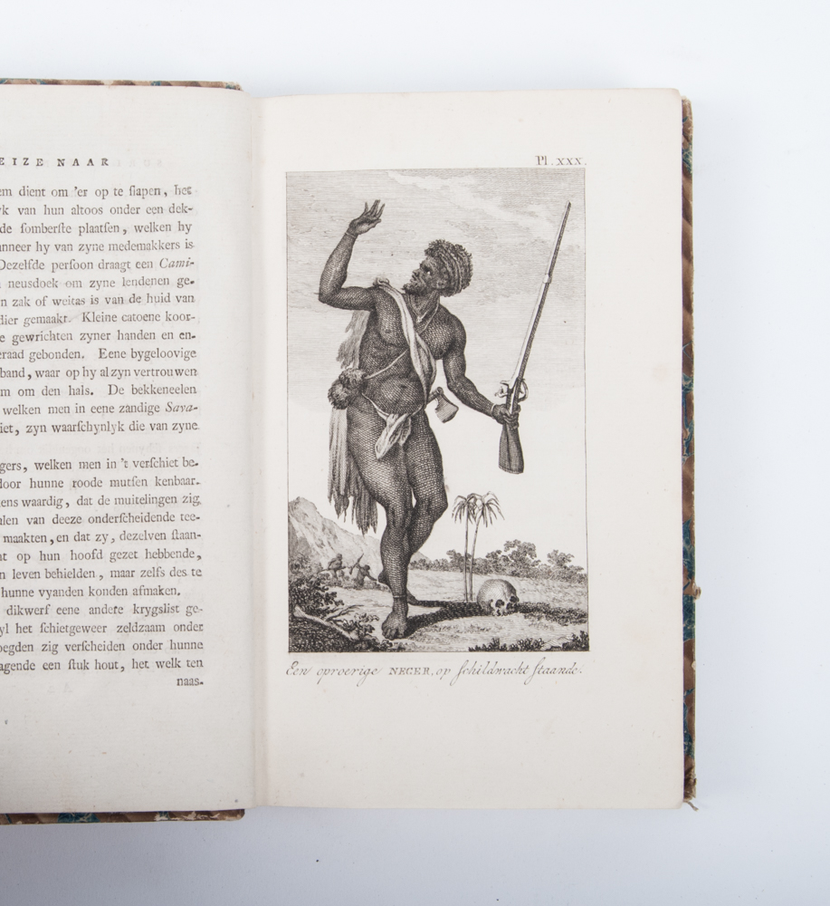 Johannes Allart, Amsterdam, 1st ed., 1799-1800. 339, 326, 350, 308 pp. In marbled contemporary binding with handwritten spine vignette. Complete with 37 engravings, 2 plans and 3 maps, 5 of which folding. 4to.
