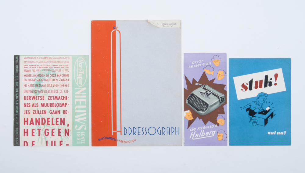 Het Addressograph Systeem, 1937. 20 pp. Stapled, incl. inlay. On punching machines, etc. + Brochure: De nieuwe Halberg. Typmachine, ca. 1960 - and 1 other.