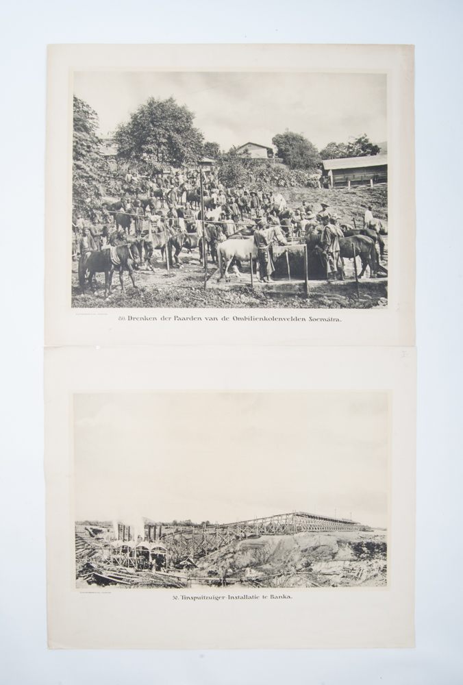 Kleynenberg & Co, Haarlem. Each 73.5 x 59.5 cm. Watering of horses of the Ombilienkolenvelden Sumatra, no. 80, good copy, some stains + Young Tobacco field, no. 149, some small stains, else good - and 11 others. Several trifle stained, two plates sl. torn in lower margin, else good.