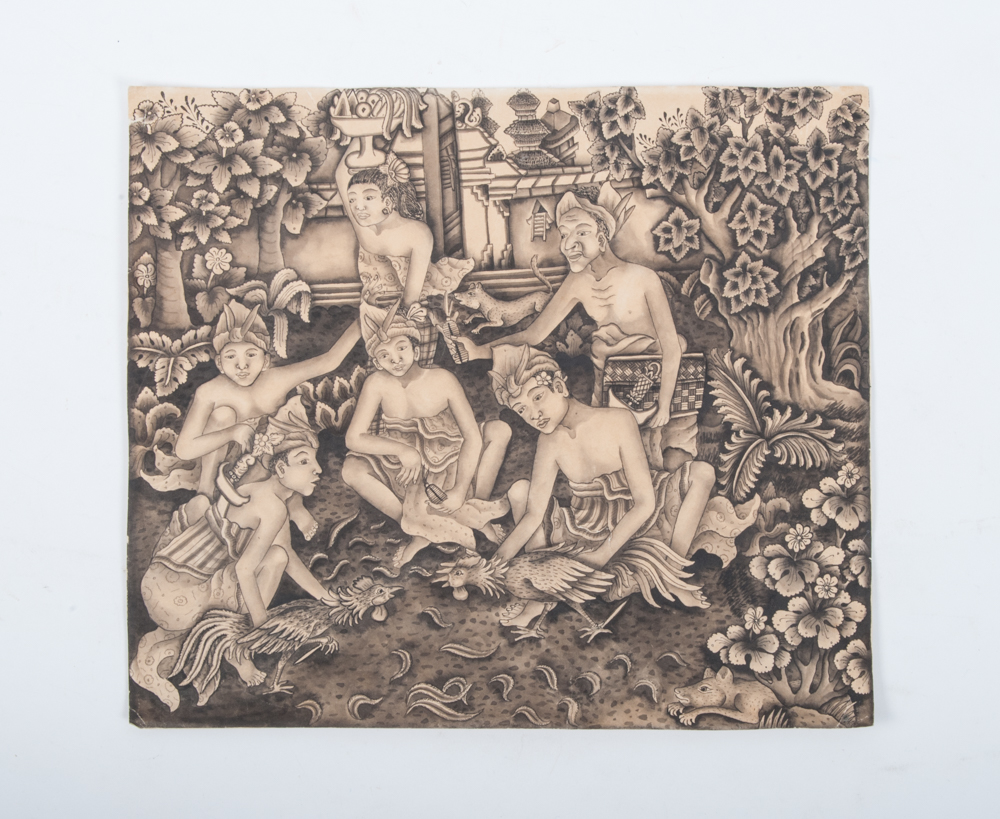 Bali, circa 1930s. Original print 30 x 34 cm, India ink. Presumably by Wayan Punduh. Small folds in corners, two small tears (one at the top, one at the surface of the image, not clearly visible), else good copy.
