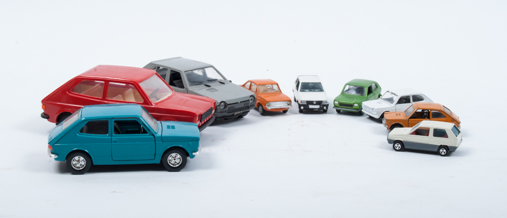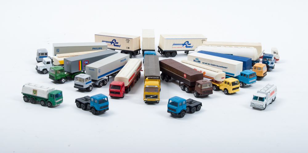 Lot incl. Durago, Efsi, various lorries and buses, partly in box + dozens of other toy cars from the '70s-80s.