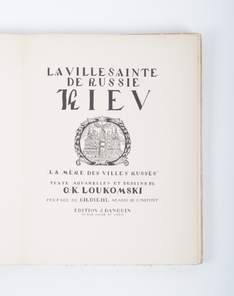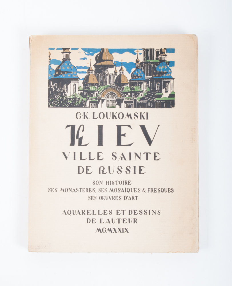 Small folio (34 x 26 cm.), multi-coloured illustrated paper cover with title, numbered copy, no. 8 of 50 on special light colored paper. Complete with illustration in the text, 64 leafs with photographic reproductions and 16 leafs with tipped-in illustrations by Loukomski. Cover trifle worn. Good copy, rare.