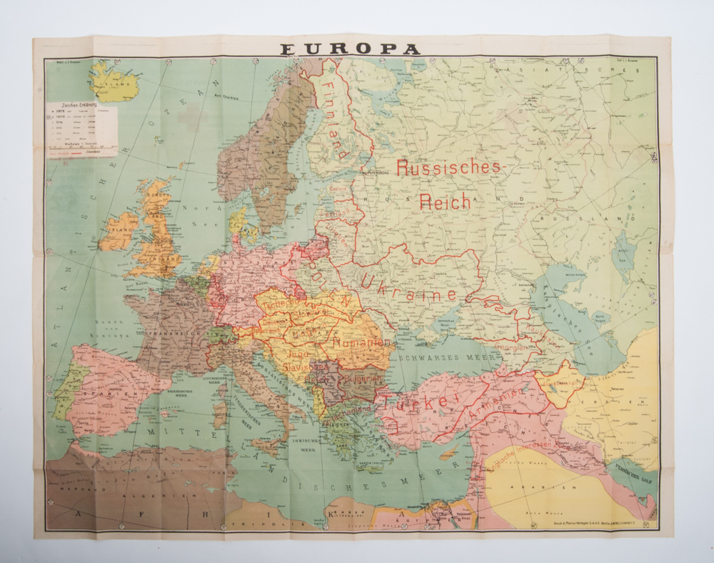 Uitgegeven met goedkeuring en ten bate van het Nederlandsch Roode Kruis, folded, with verso: Europa. Druck des Pharus-Verlages, Berlin, [1922], Mastab 1:5.000.000 in which the new borders and states are marked in red.