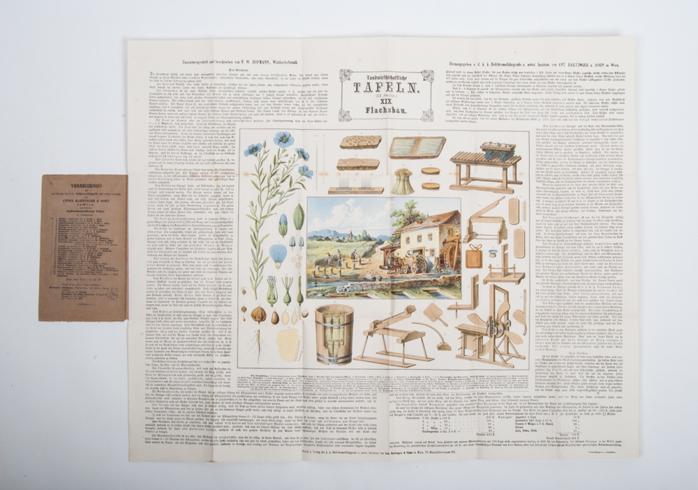 Zusammengestellt und beschrieben von F.W. Hofmann. Vienna, A. Hartinger & son, 1867, large folding chromolithographic plate with descriptive text surrounding a central image, ca. 58 x 70 cm., folded in original cover, 8vo.