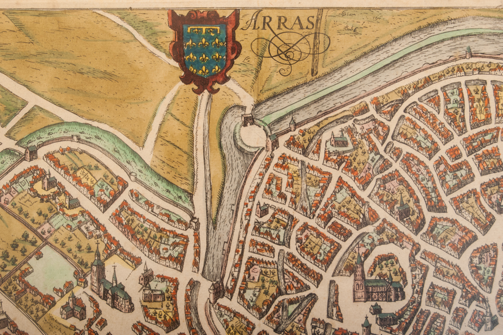 Three hand-coloured, etched and engraved maps from Guicciardini, ca. 1600, each ca. 23 x 31 cm., (sl. damaged) frames.