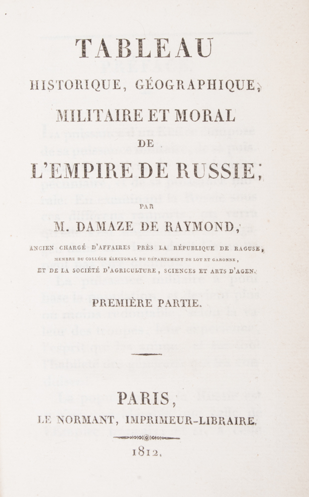 de l' Empire de Russie, Damaze de Raymond (2 vols.), Paris, Le Normant, 1812.