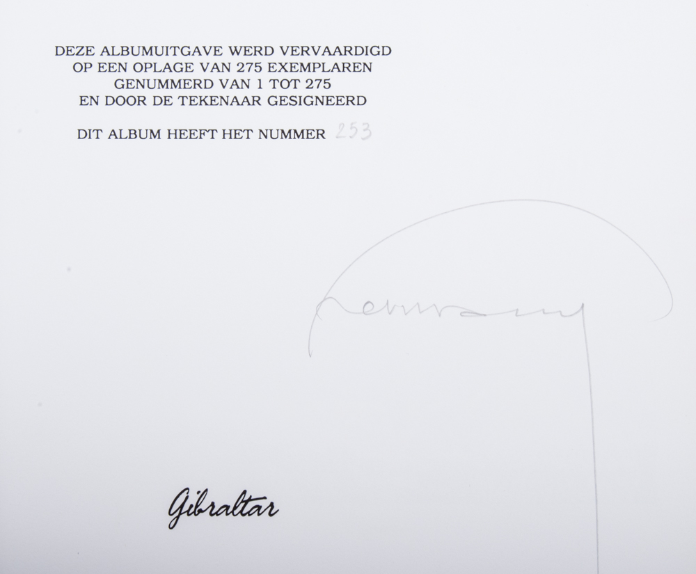 Babette, Gibraltar, 1994. Deluxe numbered and signed edition. 29/275. Folio with faux leather relief binding and pasted plate + Elose de Montgri + Germain + Reinhardt + Alda, all from the same series - and Schemerwoude: Assunta. Strip Art Features, 1998. Deluxe with dust jacket. 44/300. With signed screen print.