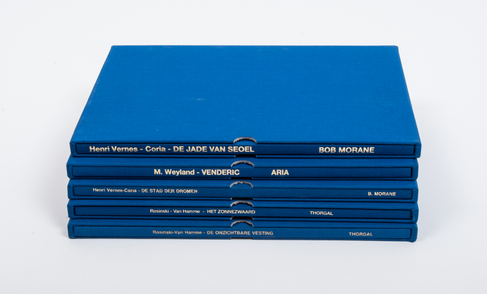 Henri Vernes-Coria. Bob Morane - De stad der dromen + Roskinski-van Hamme - Thorgal. De onzichtbare Vesting + Rosinski-van Hamme - Thorgal. Het Zonnezwaard + M. Weyland - Aria. Venderic + Henri Vernes-Coria - Bob Morane. De Jade van Seoul. All 1992/1993. Deluxe numbered and signed cloth-bound editions in slipcase. All with signed screen print. De Onzichtbare Vesting hc. numbered.