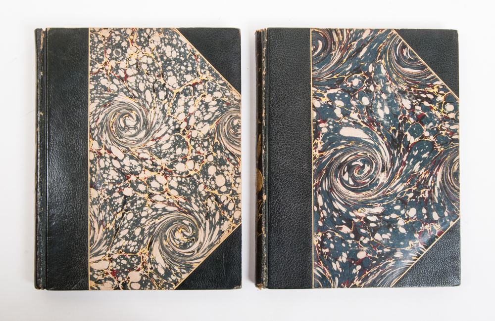 The bindings, 4to., uniform binding in green leather with marbled boards and spine with title and illustration, polychrome and in gilt stamping, marbled endpapers. Bindings trifle worn. Good copies.