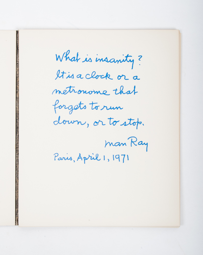 Clin d'Oeil, Torino, Galleria Il Fauno - Galleria Martano, 1971. Exhibition of work by Man Ray, text by Giuliano Martano and 6 tipped-in photos by Man Ray and tipped-in title vignette of the Dada retrospective, Paris, 1957, text and photos loose in original cahier (24 x 20 cm.).