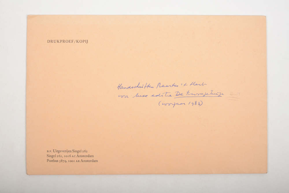 Written in pen on the envelope: "Handschriften Maarten 't Hart voor luxe editie De Kroongetuige [in pencil: e.a.] (voorjaar 1983)."