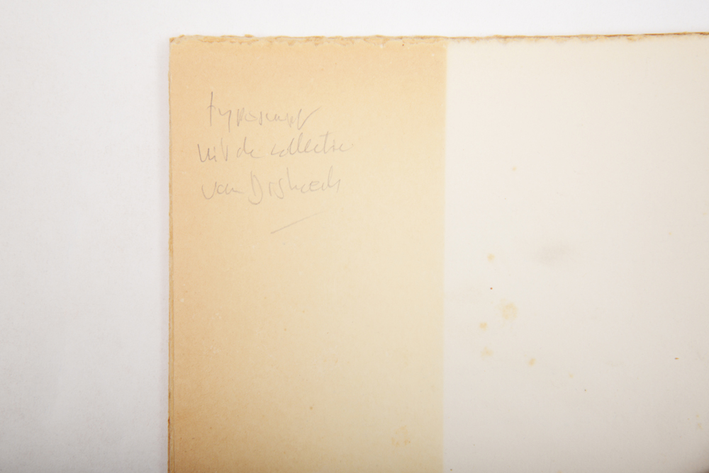 With a note in pencil in the back: "Typoscript uit de collectie Van Dishoeck." Uitgeverij Van Dishoeck published the first trade edition of this work by Boutens in 1930 (first edition: 1926).